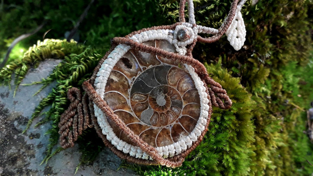 au centre, une magnifique ammonite, précieux fossile symbolisant le mouvement perpétuel par sa spirale🌀