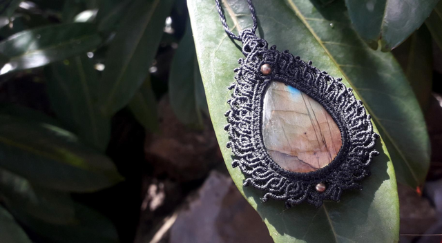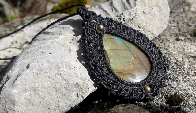 Sertie d'une pierre naturelle semi-précieuse de labradorite aux magnifiques reflets chauds 🔥