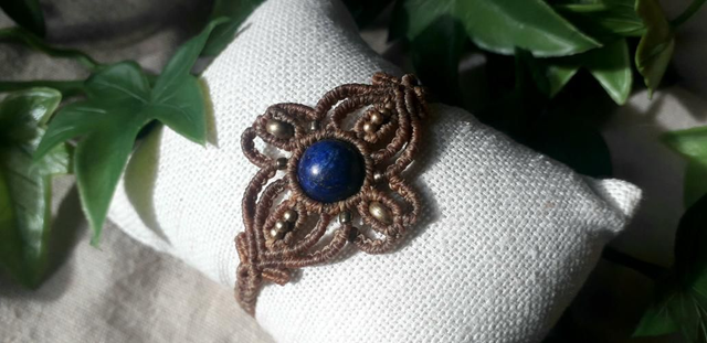 La perle située au centre du bracelet est une perle naturelle semi-précieuse de Lapis Lazuli✨ les perles qui l'accompagnent sont en laiton.